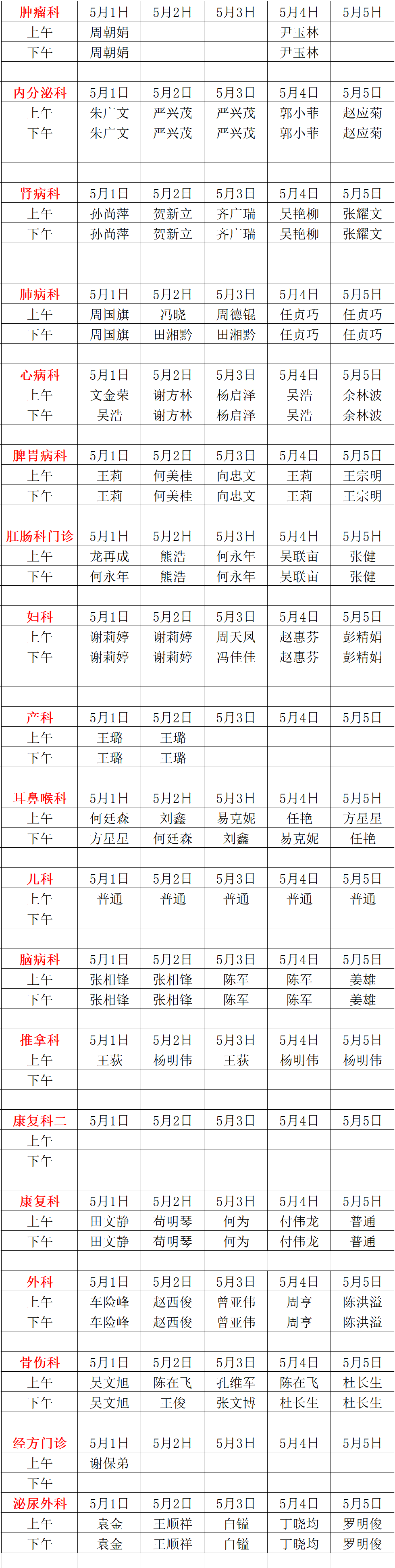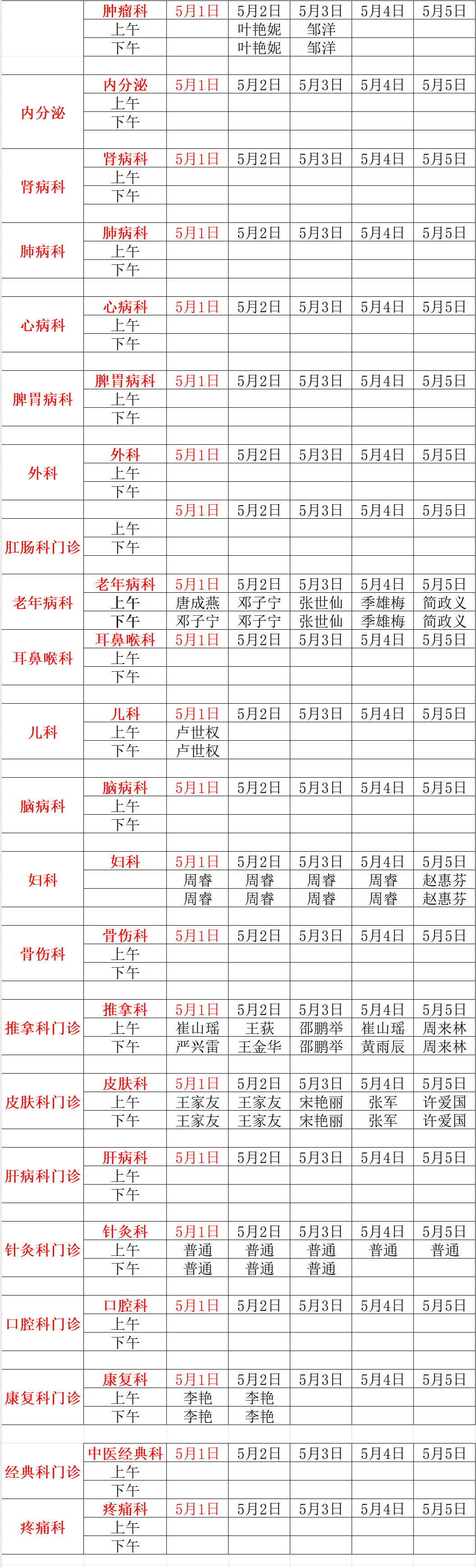 新蒲院区排班表