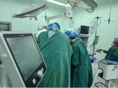 ICU主任刘小飞考虑患者重度创伤性湿肺、急性呼吸窘迫综合征氧合不能维持,有进行人工体外膜肺(ECMO)支持指征,且腹腔损伤严重,亟需急诊腹部手术探查。副院长孔维军第一时间组织多学科MDT联合诊疗,会诊明确先由ICU行V-V ECMO支持治疗改善患者缺氧,由麻醉科术中保驾,外科急诊手术治疗。