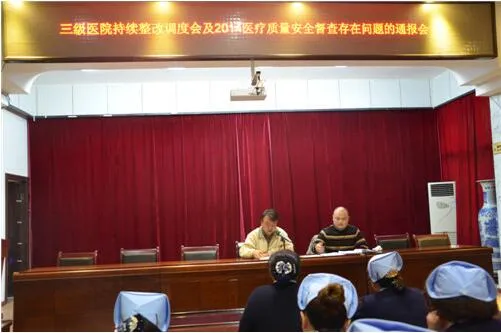 2014年12月25日下午,三级医院持续整改与2014年医疗质量安全督导检查存在问题通报会在医院大会议室举行。医院领导班子,全员中层干部与部分医务人员参加了会议 。