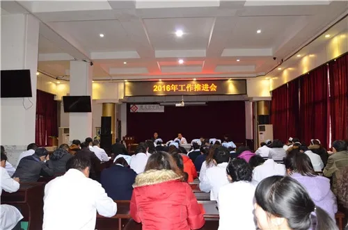 2016年2月14日下午,遵义市中医院在大会议室召开了2016年工作推进会,参加会议的有医院领导班子,全体中层干部和行政职能科室全体人员。
