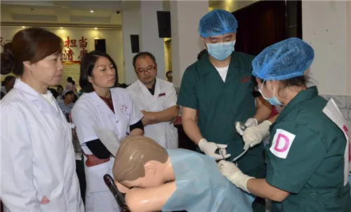 大赛分为技能操作和知识竞赛两种形式进行。其中心肺复苏术、气囊面罩给氧及非同步直流电除颤操作与知识答题为必考项目,腹膜腔穿刺术与胸膜腔穿刺术为抽选操作。本次活动以实用性、可操作性为目的,促进我院医护人员急救专业知识水平和技能的提升。各参赛队伍准备充分、训练有素,操作干净利落、技术连贯,参赛队员回答问题思路敏捷、层次清楚,现场爆发出一阵阵热烈的掌声。经过4个小时的紧张角逐,骨伤科荣获冠军桂冠,手术室与皮肤科荣获二等奖,急诊科、脑病心病科二病区和脑病心病科一病区喜获三等奖。