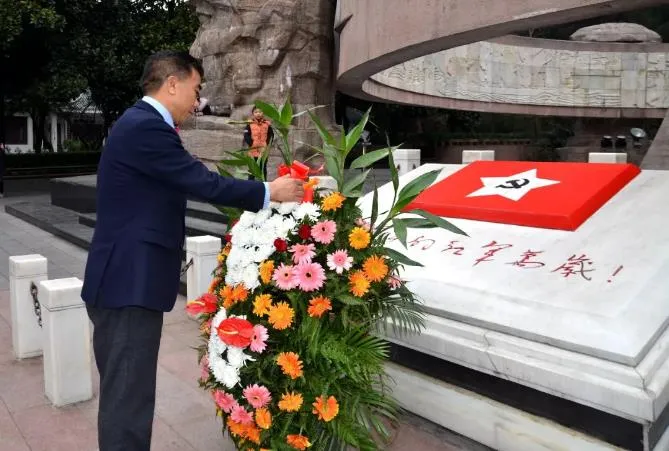 始建于1959年的遵义红军烈士陵园安放着红军烈士遗骨,青松翠柏环抱、庄严肃穆。王兴鹏一行来到这里,向红军烈士纪念碑敬献花篮。并参观了烈士墓、红军坟及红军卫生员塑像。回顾革命前辈艰苦奋斗的光辉历程,深切缅怀革命先烈的丰功伟绩。