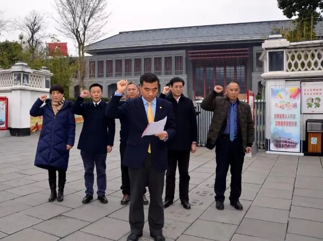 离开红军烈士陵园后,王兴鹏一行前往遵义会议会址参观。在遵义会议会址广场,面对党旗,王兴鹏一行重温入党誓词。在王兴鹏领誓下,大家庄重严肃、铿锵有力地进行了宣誓。宣誓完毕后,一行人参观了遵义会议纪念馆。