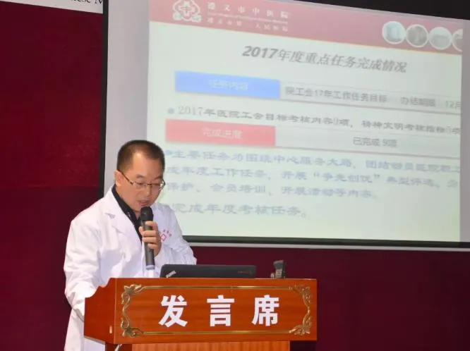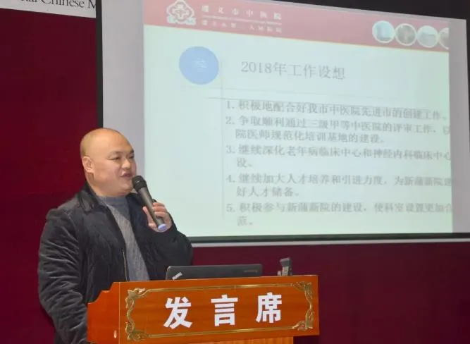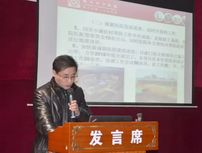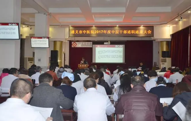2018年1月13日,遵义市中医院2017年中层干部述职述廉会议在我院大会议室举行。参加会议的有医院领导班子,全院中层干部、职工代表及党员代表。会议由党委书记、院长刘勇主持。